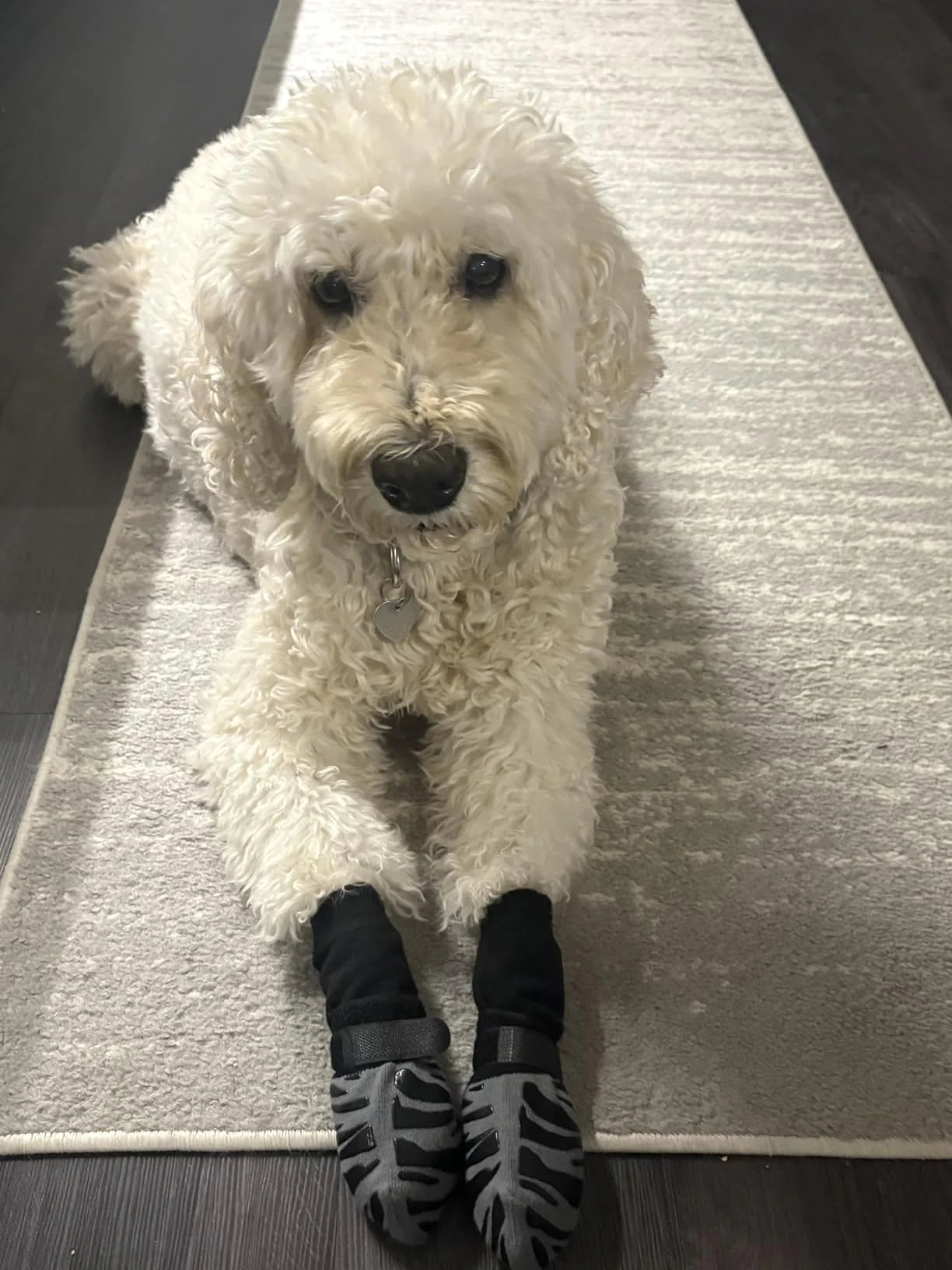 Use our size chart to measure your dog’s paw width. If you’re between sizes, we generally recommend sizing up for comfort.